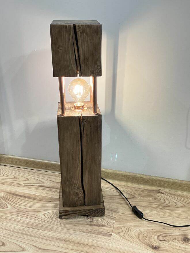 Sprzedam lampę wykonaną z belki drewnianej 16x16cmWysokości z podstawą 76cm